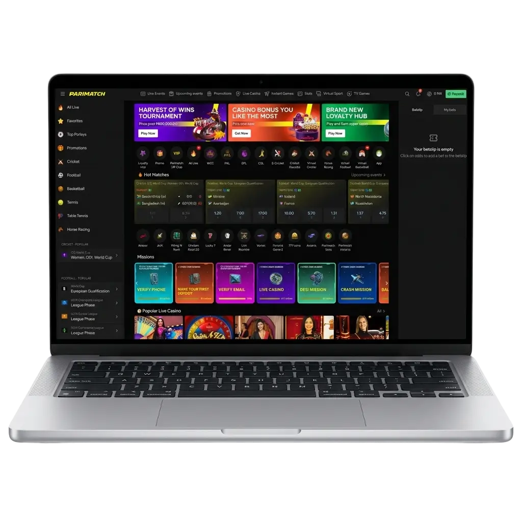 There is no dedicated desktop client for Windows or macOS. All betting and casino features are available directly through the official Parimatch website in your preferred browser, with no installation required on any computer.